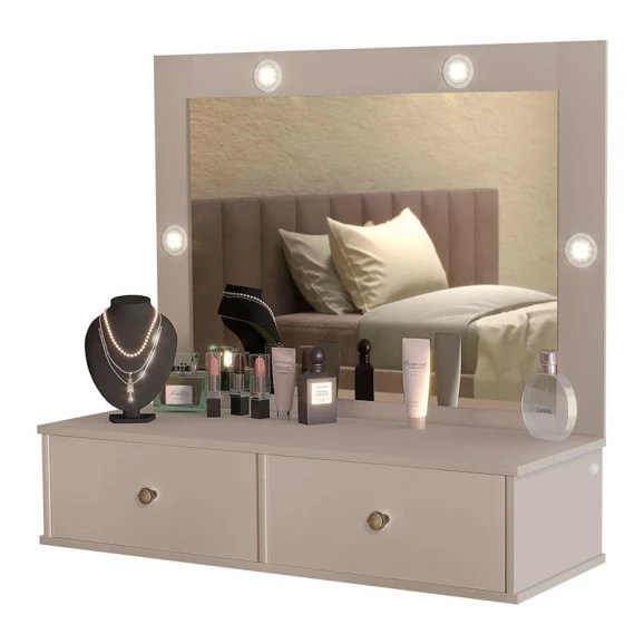 A Penteadeira Suspensa Isis fabricada pela Luapa Móveis é perfeita para quem busca funcionalidade sem abrir mão do estilo, seu formato suspenso oferece leveza visual ao ambiente, além de permitir uma melhor utilização da área inferior, perfeita para cadeiras, puffs ou organização extra. A penteadeira possui 02 gavetas sendo 01 com nicho e corrediças telescópicas, 04 leds integrados garantindo uma iluminação perfeita para maquiagem e cuidados diários, acompanha espelho, MDP 12mm nas laterais das gavetas, restante todo 15mm e 02 réguas para fixar na parede. A Penteadeira Suspensa Isis é perfeita para valorizar seus momentos de autocuidado com muito estilo, aproveite!