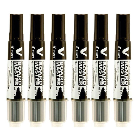 Pincel para Quadro Branco Recarregável Board Master Preto 6 Unidades - Pilot