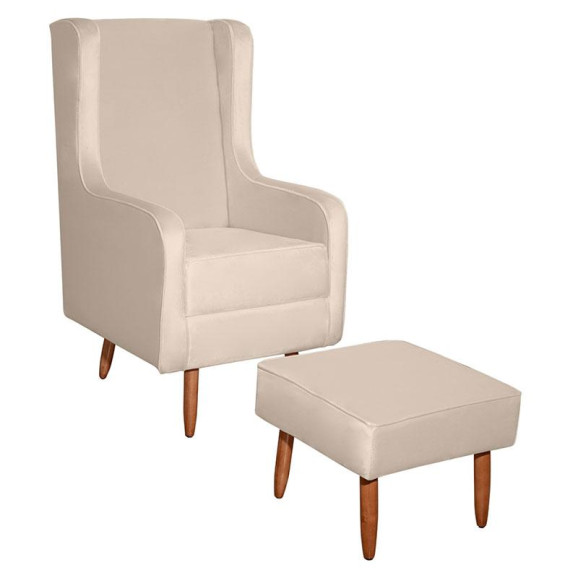 Poltrona Amamentação Aquila com Puff Veludo Off Pés Palito - Fratello
