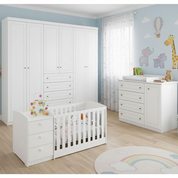 Quarto Americano 6 Portas com Berço Multifuncional Atlanta Ambiente Branco Fosco Henn - Reller