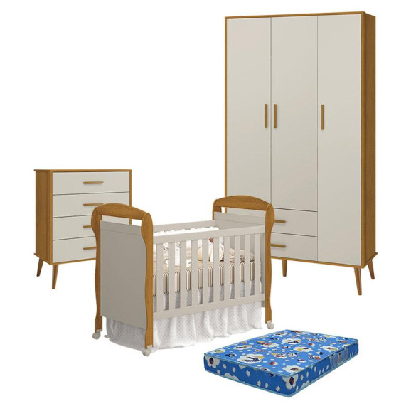 O Quarto de Bebê 3 Portas com Cômoda Gaveteiro Isis e Berço Americano Danny Areia Savana Acetinado com Colchão Ortobom - Reller é a escolha ideal para um ambiente completo, moderno e funcional. Com acabamento sofisticado em areia savana acetinado, o berço oferece conforto e segurança, acompanhado do colchão Ortobom que garante noites tranquilas. O guarda-roupa 3 portas proporciona amplo espaço para organização, enquanto a cômoda gaveteiro Isis traz praticidade e versatilidade no dia a dia, criando um quarto harmonioso, acolhedor e cheio de charme para o seu bebê.