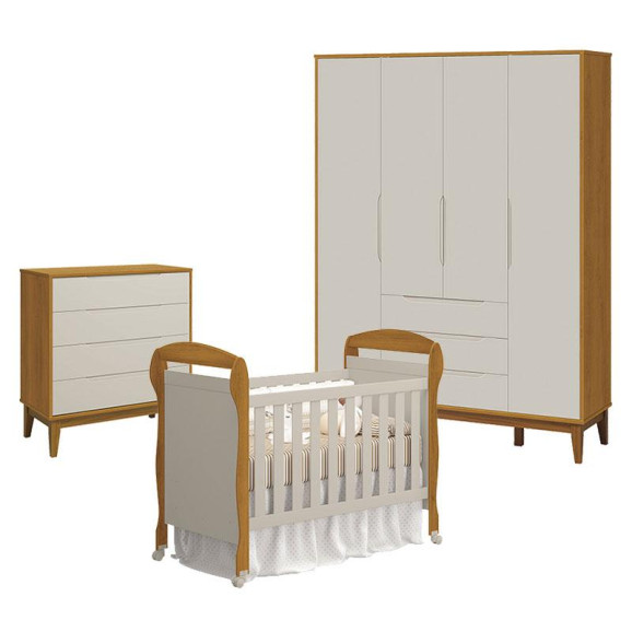 O Quarto de Bebê 4 Portas com Cômoda Gaveteiro Elfe Classic e Berço Americano Danny Areia Savana Acetinado - Reller é a escolha perfeita para um ambiente completo, moderno e funcional. Com acabamento sofisticado em areia savana acetinado, o berço oferece segurança e conforto, enquanto o guarda-roupa 4 portas proporciona amplo espaço para organização. A cômoda gaveteiro Elfe Classic garante praticidade no dia a dia, criando um quarto harmonioso, acolhedor e cheio de charme para o seu bebê.