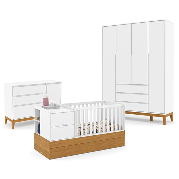 Quarto de Bebê 4 Portas Nature Clean com Berço Americano Multifuncional Formare Branco Freijó Eco Wood - Matic