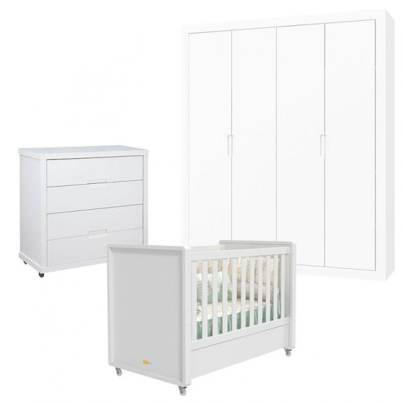 Quarto de Bebê 4 Portas Tutto New com Cômoda Gaveteiro Branco Acetinado - Matic