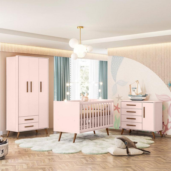 Quarto de Bebê Ambiente Q Encanto Retrô Rosa - Qmovi