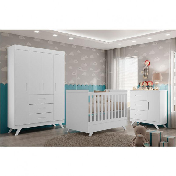 Quarto de Bebê Ambiente Retro Maya com Berço Americano Vitória Branco Acetinado – Canaã