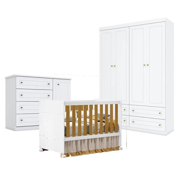 Quarto de Bebê Americano 4 Portas com Berço Americano Katatau Branco Acetinado Savana – Reller - Henn