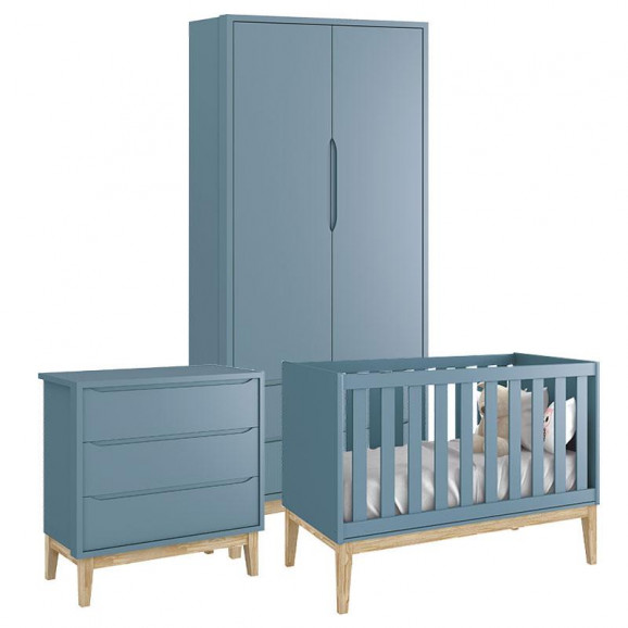 Quarto de Bebê Classic 2 Portas Azul com Pés Madeira Natural – Reller