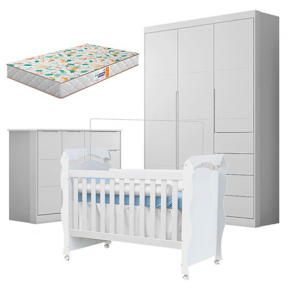 O momento mais aguardado pelo papai e mamãe é a hora de montar o quartinho do bebê, Por isso você precisa de móveis de qualidade. Pensando em corresponder suas necessidades apresentamos a o Guarda Roupa e a Cômoda da linha Eloá desenvolvidos pela Phoenix Baby com lindo design, e amplo espaço para sua melhor comodidade na hora de manter tudo organizado. E Berço da linha New Nanda desenvolvido pela Carolina Baby, com Colchão da Gazin, garantindo total conforto e segurança na hora do soninho. Não perca tempo e garanta já esses lindos produtos!