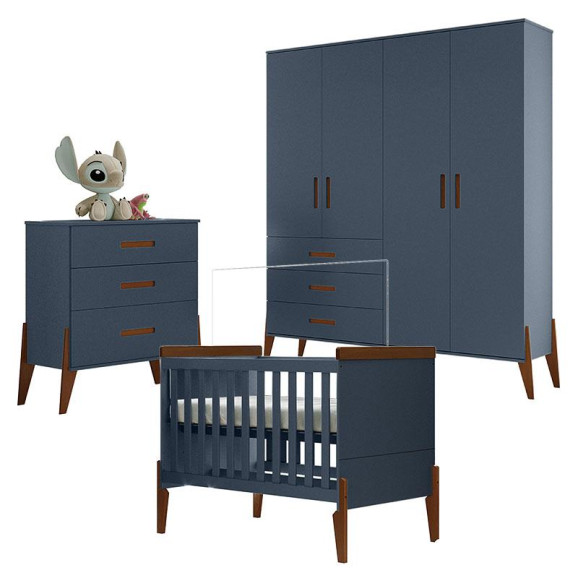 Escolher os móveis do quartinho do bebê é uma tarefa difícil, porém muito especial, e nós queremos ajudar nessa escolha tão importante apresentando essa linha incrível que a Canaã desenvolveu com todo carinho, amor e cuidado para vocês, a linha Emilly foi fabricada com os melhores materiais e de excelentes qualidades para maior segurança, resistência e durabilidade para melhor lhe atender durante os anos de uso, composto por Berço Americano para uma soneca tranquila e confortável do bebê, Cômoda 3 Gavetas e Guarda Roupa 4 Portas contam com amplo espaço interno e ótimas repartições para melhor organizar as roupinhas e acessórios do baby para maior praticidade no seu dia a dia, conta com um lindo e delicado design na cor Azul, com pés e detalhes na cor Magno proporcionando modernidade e um fino toque ao quartinho do seu pequeno. Adquira esse lindo jogo de quarto e se surpreenda, aproveite!