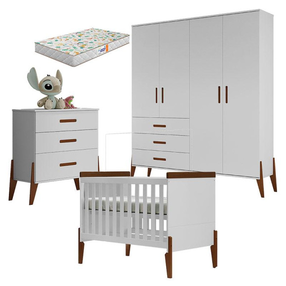 Quarto de Bebê Emilly Branco Acetinado Magno com Colchão Gazin - Canaã Baby