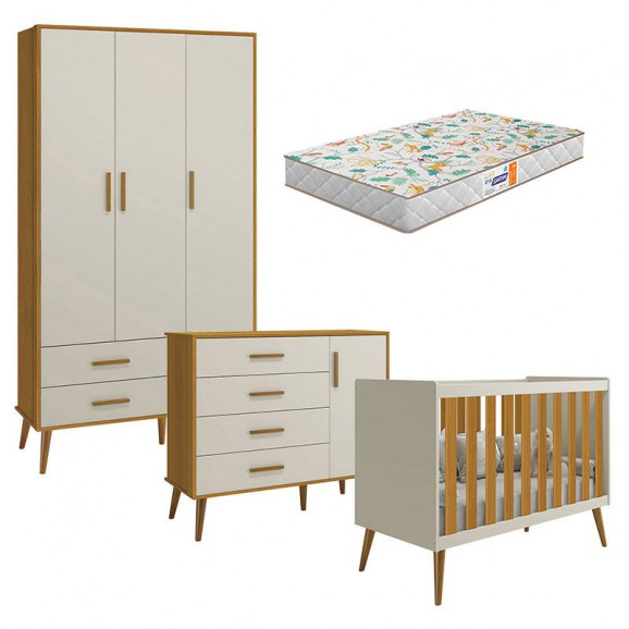 Quarto de Bebê Isis 3 Portas Areia Acetinado Savana com Colchão Gazin - Reller