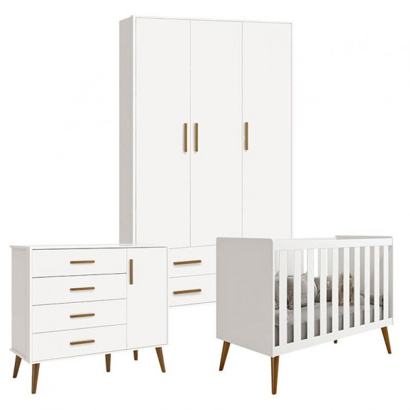 Quarto de Bebê Isis 3 Portas Branco Acetinado - Reller