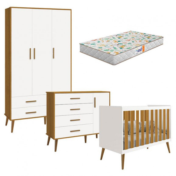 Quarto de Bebê Isis 3 Portas Branco Acetinado Savana com Colchão Gazin - Reller