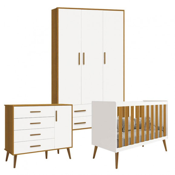 Quarto de Bebê Isis 3 Portas Branco Acetinado Savana - Reller