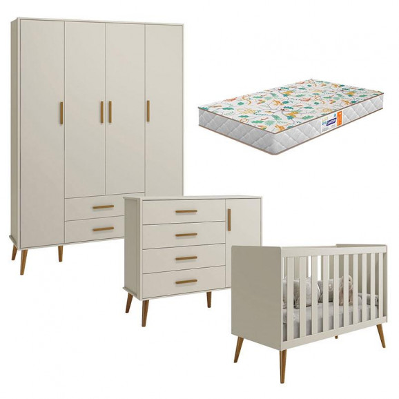 Quarto de Bebê Isis 4 Portas Areia Acetinado com Colchão Gazin - Reller