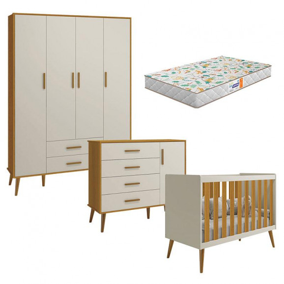 Quarto de Bebê Isis 4 Portas Areia Acetinado Savana com Colchão Gazin - Reller