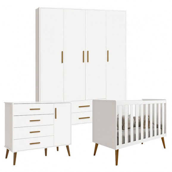Quarto de Bebê Isis 4 Portas Branco Acetinado - Reller