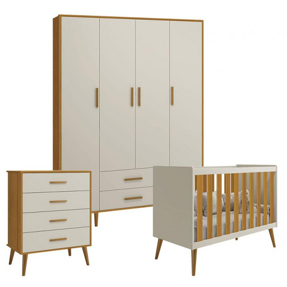 Quarto de Bebê Isis 4 Portas com Gaveteiro Areia Acetinado Savana - Reller