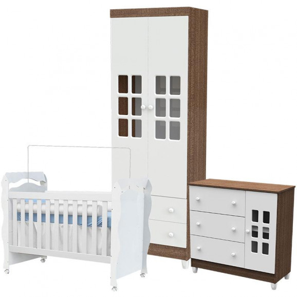 Quarto de Bebê Mariah 2 Portas com Berço New Nanda Branco Acetinado - Carolina