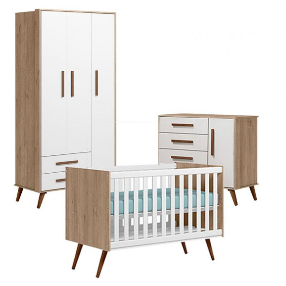 Quarto de Bebê Q Encanto Retrô Carvalho TOQ Rústico Branco - Qmovi
