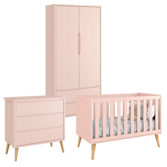 Quarto de Bebê Theo 2 Portas Rosa com Pés Madeira Natural – Reller