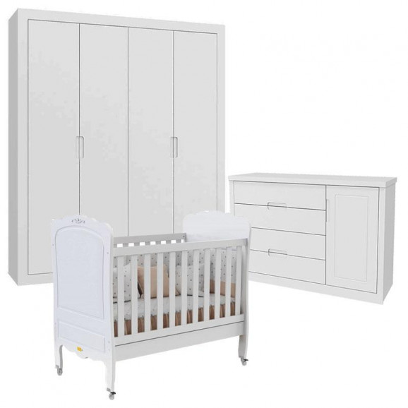 Quarto de Bebe Tutto New com Berço Provence Branco Acetinado - Matic