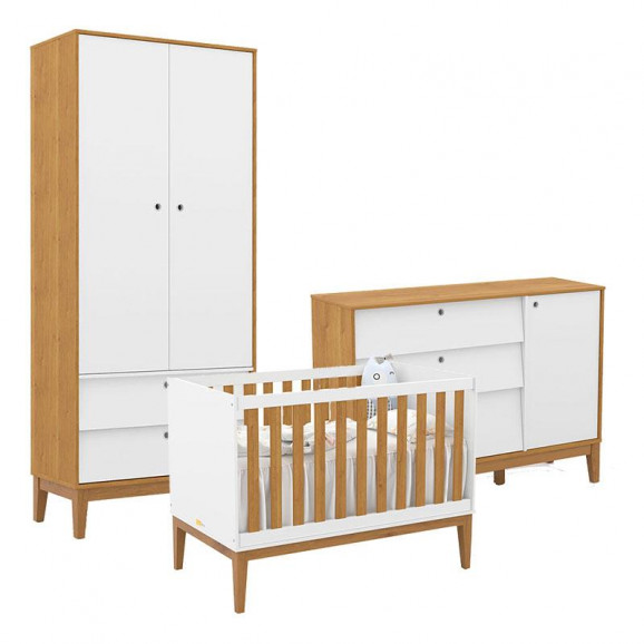 Quarto de Bebe Unique 2 Portas com Cômoda Sapateira Branco Soft Freijó Eco Wood - Matic