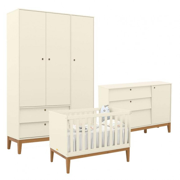 Quarto de Bebe Unique 3 Portas com Cômoda Sapateira Off White Eco Wood - Matic