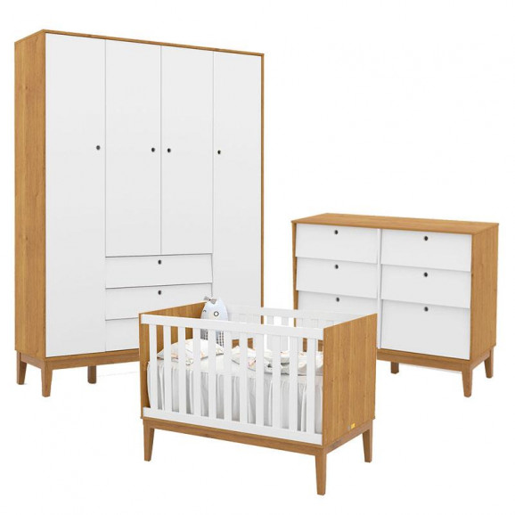 Quarto de Bebe Unique 4 Portas com Cômoda 6 Gavetas Freijó Branco Soft Eco Wood - Matic