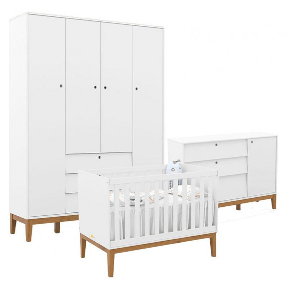 Quarto de Bebe Unique 4 Portas com Cômoda Sapateira Branco Soft Eco Wood - Matic