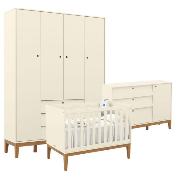 Quarto de Bebe Unique 4 Portas com Cômoda Sapateira Off White Eco Wood – Matic