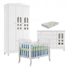 Berço Americano Mirelle e Guarda Roupa Infantil Ane Branco Brilho com Colchão Gazin – Phoenix Baby