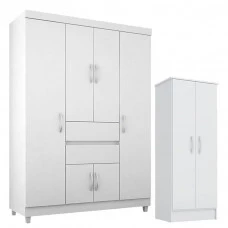 Cômoda com Porta e Guarda Roupa Nature Clean 3 Portas Branco Acetinado Eco Wood - Matic