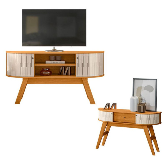 Rack Bancada Atlanta com Aparador Estoril Cinamomo Off White – Madetec