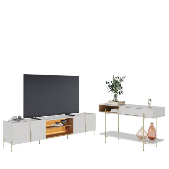Rack Bancada Maggiore 2.4 com Aparador para Sala Sena Off White Matte Freijó - Colibri