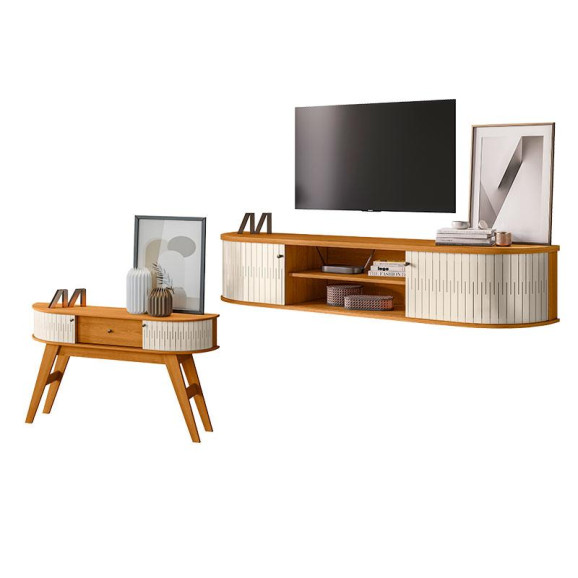 Rack Bancada Suspensa Algarve com Aparador Estoril Cinamomo Off White – Madetec